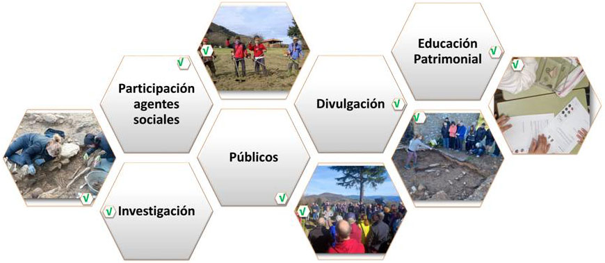 Se busca estimular la participación ciudadana, tanto en el proceso de investigación, como en el conocimiento de su pasado, así como promover cambios positivos en las actitudes y comportamientos relacionados con la ciencia y el patrimonio. Queremos generar conocimiento científico sobre la comunicación social de la ciencia arqueológica, combatir la desinformación y los estereotipos existentes, además de la falta de transferencia en estos ámbitos, fomentado una conexión profunda y significativa entre las comunidades y los procesos de generación de conocimiento científico.